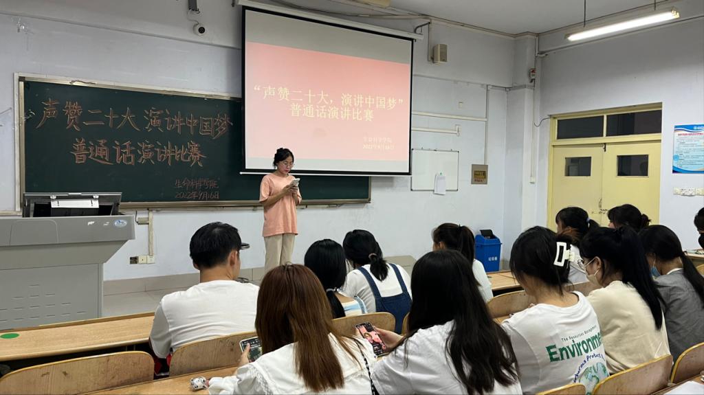 9月16日,为迎接党的二十大胜利召开,推动语言文字规范化工作深入开展,太阳成集团tyc9728于求实楼0105教室举办“声赞二十大,演讲中国梦”普通话演讲大赛。