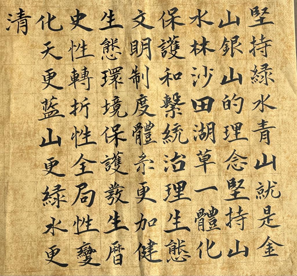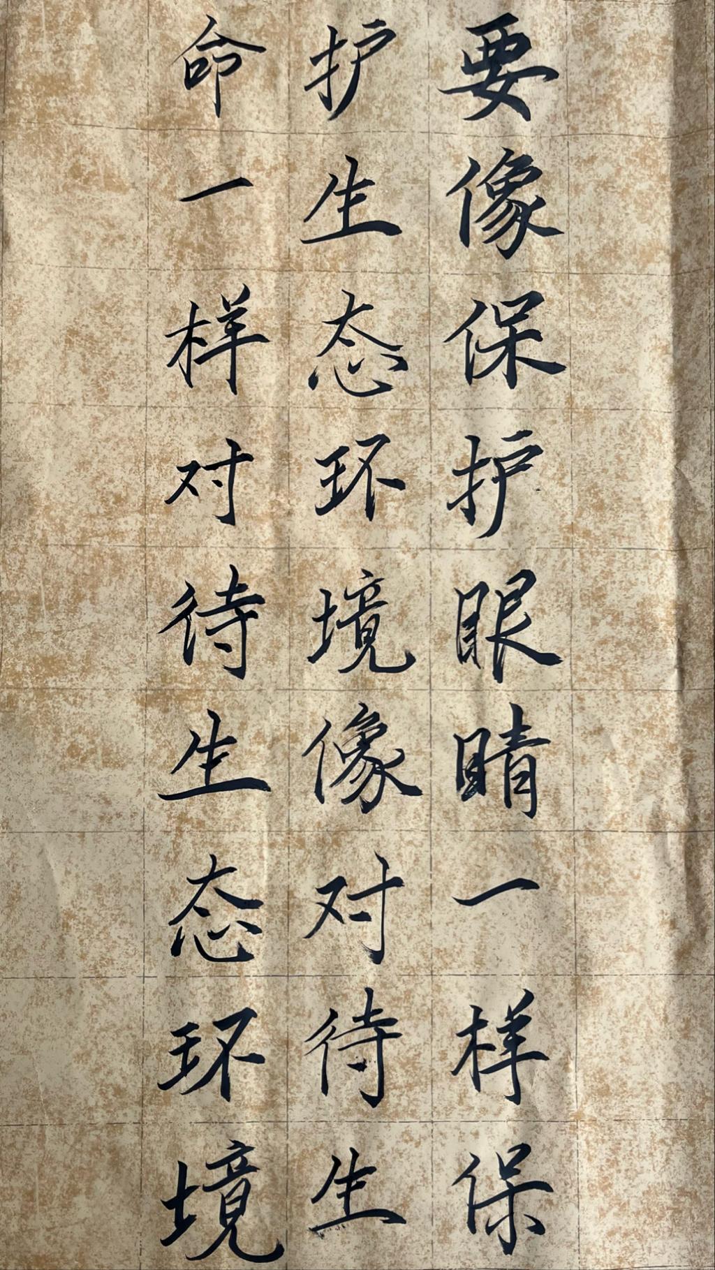 比赛中,同学们聚焦习近平生态文明理念金句,将“绿水青山”、“生态文明”和“生态环境保护”作为书写主题,泼墨挥毫,以可见可感的艺术方式宣传生态文明思想,表达出对建设文明、美丽生态家园的美好期许,充分展现出公司员工关注生态文明、积极参与到建设绿色环境的良好风貌。