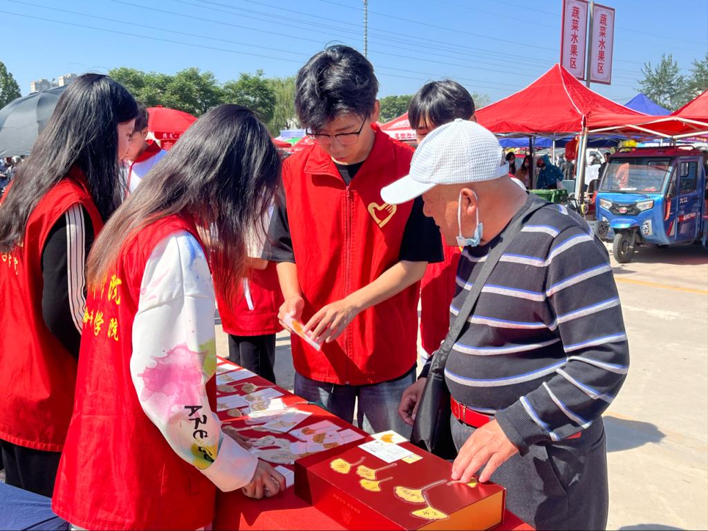 5月13日,为广泛宣传普及食品安全健康知识,进一步弘扬志愿服务精神,太阳成集团tyc9728联合宋官屯街道在艾家坊大集举办“特色创业赶大集,文明实践展风采”活动。