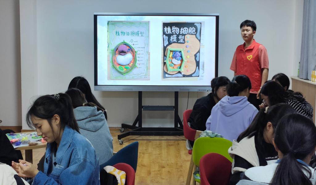活动中,主讲人向同学们介绍了动植物细胞的区别及模型制作方法并展示了优秀的动植物细胞模型作品。随后,志愿者们分发超轻黏土和制作工具,同学们运用所学动植物细胞的结构理论知识并充分发挥想象力,制作出一个个精美又富有创意的细胞模型,呈现出美妙的微观世界。