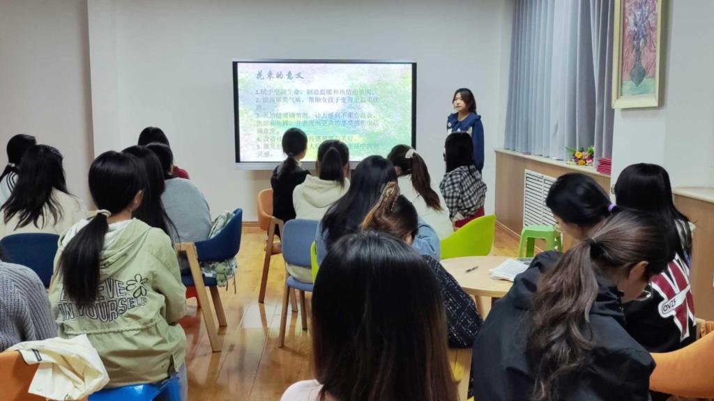 活动中,主讲人播放了“小王子的玫瑰花”故事视频引入主题,详细讲解了花束的制作方法并展示了优秀作品,引导同学们了解了花束的含义。随后,同学们利用志愿者分发的花材、彩色卡纸、丝带等材料满怀热情地动手实践,大家积极互动、探讨,在设计中融入自己的创意,制作出丰富多彩的花束作品,充满了老员工温暖的情感和艺术气息。最后,各小组进行作品展示并讲解创作理念。