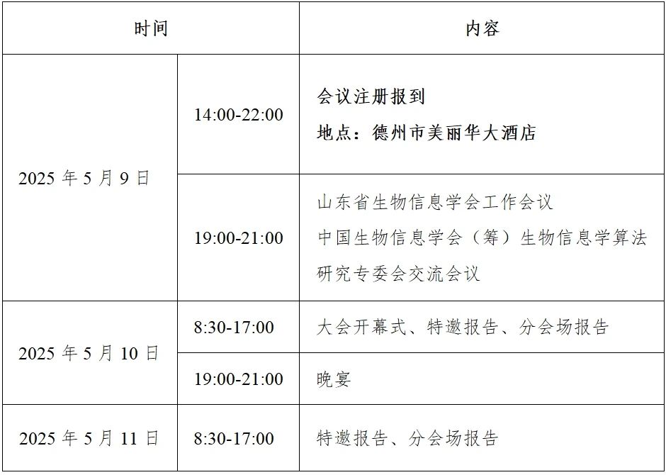 大语言模型与生物医学大数据,会议将围绕生物信息学的前沿热点问题、关键算法突破、计算技术创新等方向,汇聚国内外专家学者,共同探讨生物信息学领域的新理论、新方法、新技术及其在生命科学研究中的应用。会议将安排特邀报告、大会报告、分会场报告80余个,预计参会人数300-500人。