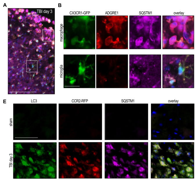 创伤性脑损伤(TBI)后过度和长期的神经炎症会导致长期的组织损伤和不良的功能预后。然而,导致脑损伤后炎症反应加剧的机制仍然知之甚少。以前的工作表明,在小鼠脑损伤后,神经元中的宏自噬/自噬通量受到抑制,并导致神经细胞死亡。