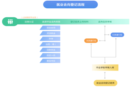 步骤一:选择去向登记。符合登记条件的毕业生选择去向类型,按要求登记信息并上传证明资料,提交审核。