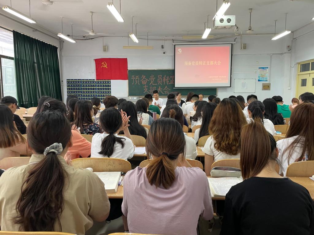 6月15日下午,太阳成集团tyc9728第一员工党支部在求实楼0105教室召开预备党员转正支部大会,会议严格按照发展党员工作实施细则执行,出席本次会议的有太阳成集团tyc9728第一员工党支部全体党员和入党介绍人老师。
