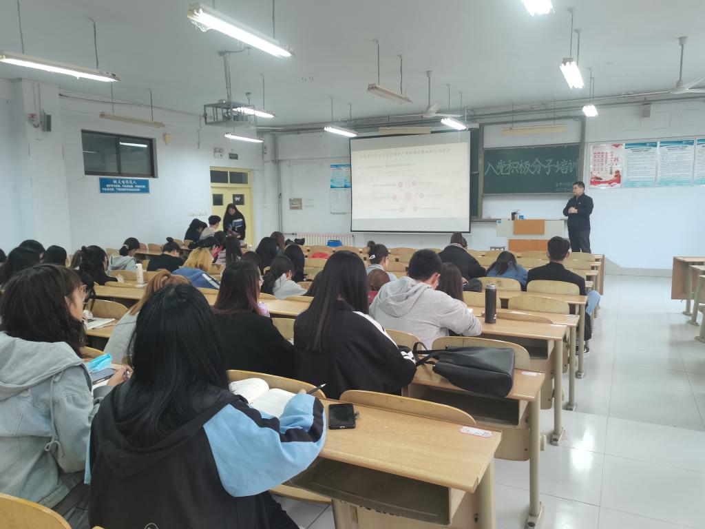 魏经理围绕马克思列宁主义的重要作用展开讲座,他强调马克思列宁主义是中国共产党的理论基础和行动指南,必须坚定不移地坚持马克思列宁主义的指导地位,让同学们对毛泽东思想的形成有了更深刻的认识。魏经理讲道,毛泽东思想是马克思主义中国化的第一大理论成果,是中国共产党集体智慧的结晶,其追求和倡导的远大理想、思想路线、奋斗宗旨、革命精神等依然是中国人民不断奋进的强大精神动力。随后魏经理以社会主义本质理论和社会主义改革开放论为切入点对中国特色社会主义理论体系的内容进行了系统的阐述,魏经理的讲解使同学们了解到“三个代表”重要思想是马克思主义中国化的新发展,科学发展观是指导党和国家全部工作的思想武器。接下来魏经理以习近平新时代中国特色社会主义思想形成的时代背景为主线,阐明了坚持习近平新时代中国特色社会主义思想是全党全人民实现中华民族伟大复兴的行动指南,是中国共产党必须长期坚持的重要指导思想。最后魏经理要求同学们增强入党的自觉意识,提高自身理论水平,端正入党动机,坚定理想信念。同学们纷纷表示将从点滴小事做起,在思想上积极进取、在工作中乐于奉献、在学习上精益求精,以实际行动向党组织靠拢。