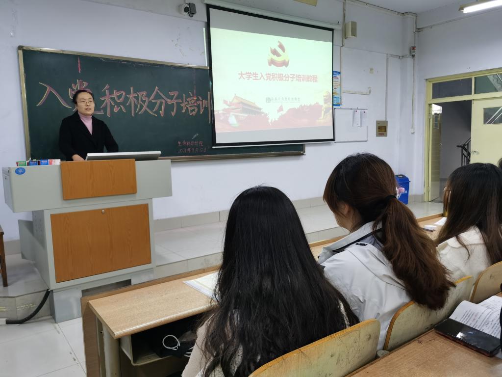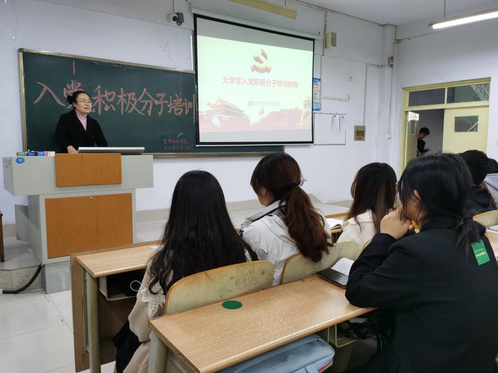 首先,王艳洁老师通过放映党中央领导的讲话带领同学们一起重温了十九大报告里习近平总书记对青年的深情寄语:“青年兴则国家兴,青年强则国强,青年一代有理想、有担当,国家就有希望。”接下来她围绕中国共产党的组织原则和组织机构、中国共产党的纪律以及中国共产党的优良作风展开讲述,强调党的组织制度包含党的民主集中制、党的代表大会制度、党的组织生活制度、党的选举制度和党内监督制度等规章制度。最后,王艳洁老师对全体学员抱以深深厚望,希望大家努力学习,踏实肯干,积极向前,时刻做好加入中国共产党的准备。