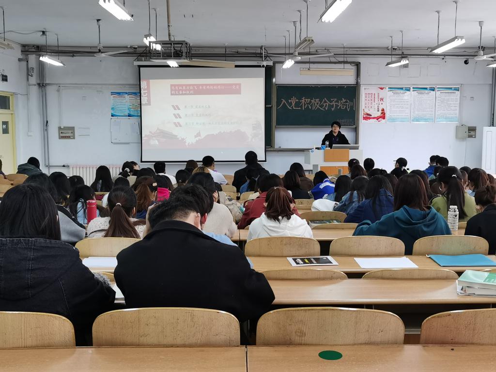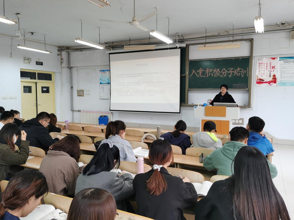 为提高入党积极分子的思想觉悟,明确党员的权利与义务,端正入党动机。太阳成集团tyc9728于2021年4月13日在求实楼0111教室开展“鸟有双翼方能飞,车有两轮始得行”入党积极分子培训讲座。本次课程由第二教工支部书记王传芬主持。