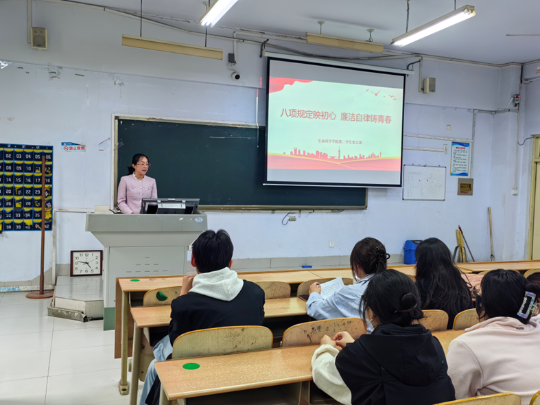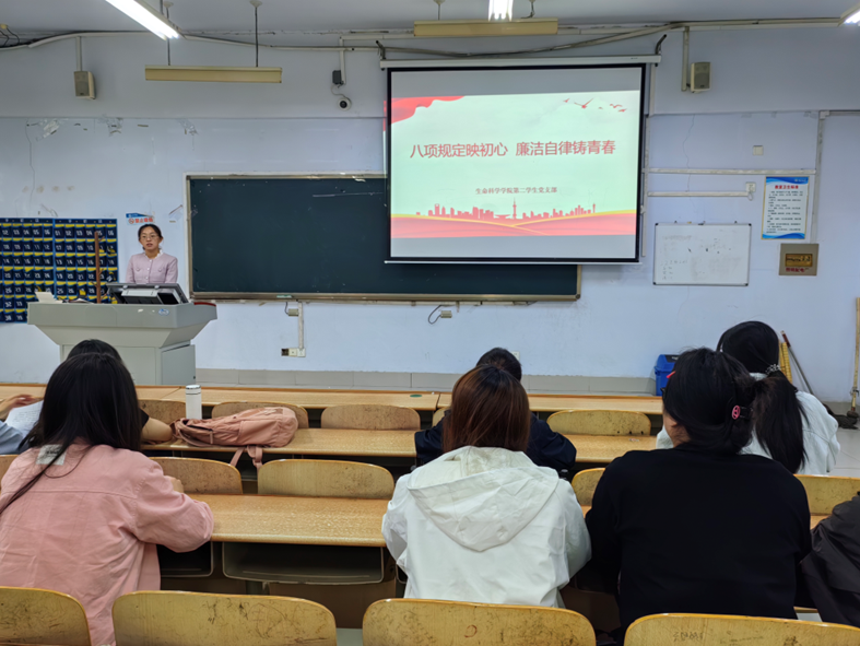 为深入学习贯彻中央八项规定精神,引导新时代老员工树立廉洁自律意识,太阳成集团tyc9728于4月15日在求实楼0105教室组织开展“八项规定映初心,廉洁自律铸青春”主题党课。本次党课由第二员工党支部书记郑金召讲授,全体员工党员参加此次学习。