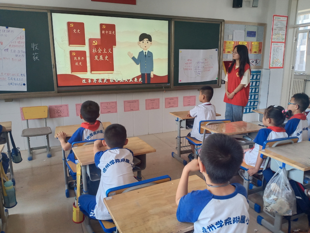 志愿者老师通过播放有关合理膳食的视频,向小员工介绍了合理膳食的定义及其重要性,帮助小员工们养成合理膳食,健康生活的习惯。志愿者老师还为他们科普了人体基本营养物质,让他们学习到了人体的基本营养物质组成。课堂的最后,志愿者老师结合膳食作用,向小员工们宣传了党史知识。通过课堂互动的方式,小员工认识到了合理膳食的重要性,懂得了中国共产党成立百年始终不变地为人民谋幸福的初心与使命,此次活动让小员工在学习营养膳食知识的同时深刻理解了党的使命,加强了小员工的学习教育,同时增强了他们的爱国情感。
