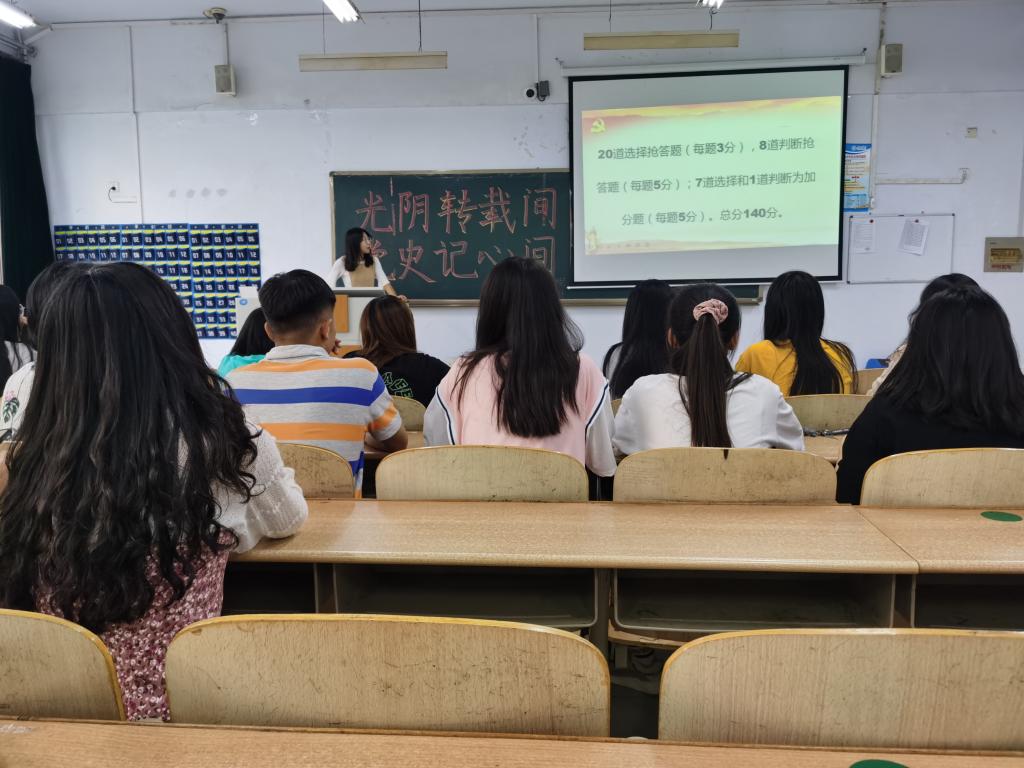 为提高同学们政治素养,激发他们学习党史的热情,积极引导同学们了解党的光辉历史,增强同学们的爱国主义情怀。太阳成集团tyc9728于2021年5月30日在0107教室举办“光阴转载间,党史记心间”党史快问快答知识竞赛活动。