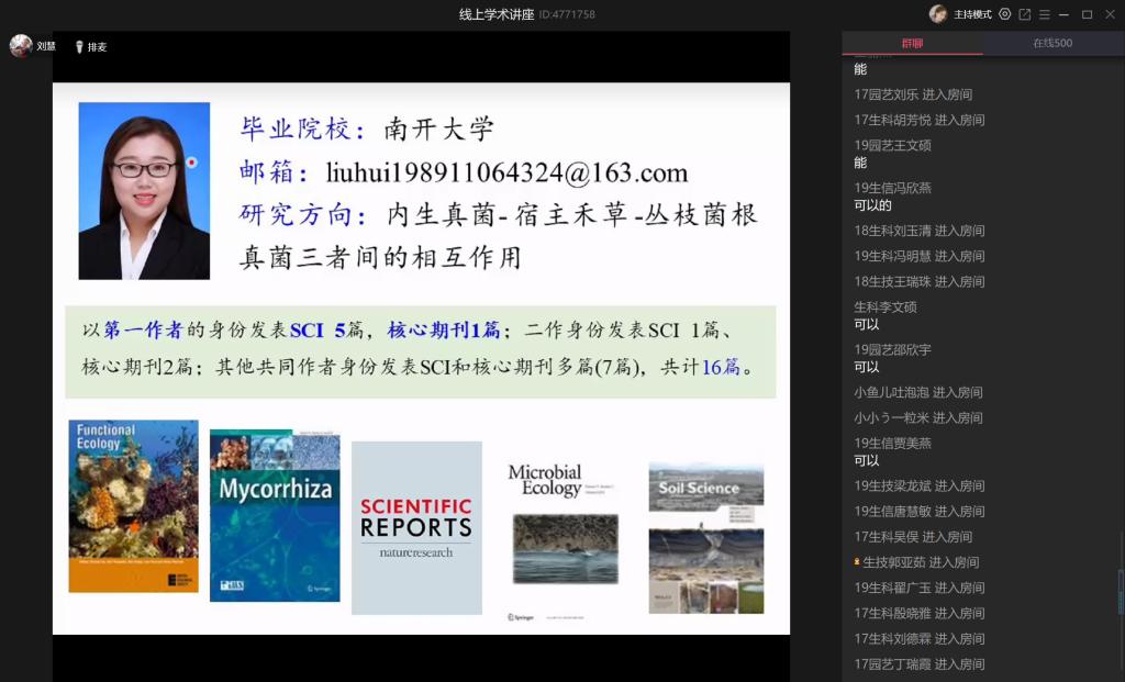 为了提高同学们的综合素质和学术修养,进一步引导同学们了解学术前沿的科学知识,感受科研世界的博大精深,太阳成集团tyc9728特于2020年9月1日下午邀请到三位博士教师在腾讯课堂为同学们开展学术“云讲座”,太阳成集团tyc9728全体员工和部分老师参加了此次讲座。