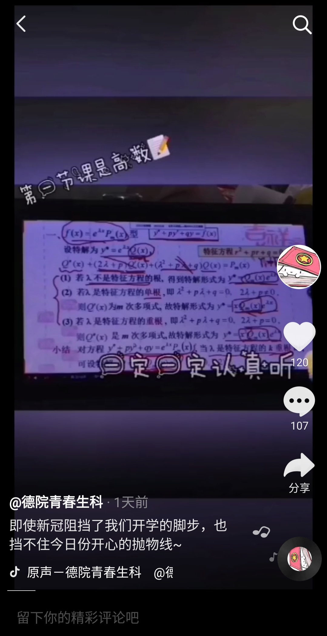 活动得到了同学们的积极响应,同学们纷纷拍摄视频向大家展示居家的学习生活,在视频中可以看出同学们积极乐观、昂扬向上的精神面貌。有的同学分享了自己认真积极上网课的生活,有机化学、高等数学、大学英语这几位好久不见的“老朋友”纷纷在视频中亮相,同学们则认真地坐在电脑桌前听老师讲课,并有条理地记好笔记,以便日后复习。还有的同学分享了自己居家的日常生活,美好的一天从早起打卡开始,经过了一天充实的学习,同学们用自己亲手做的美食犒劳奋斗的自己,同时居家期间也没有忘记坚持健康规律的生活方式,早睡早起,坚持锻炼,让居家生活更加充实和精彩。同学们在居家期间,充分利用“宅”的时间,恪己律己,严格遵守校规校纪,做到了“防疫不妨爱,停课不停学”。