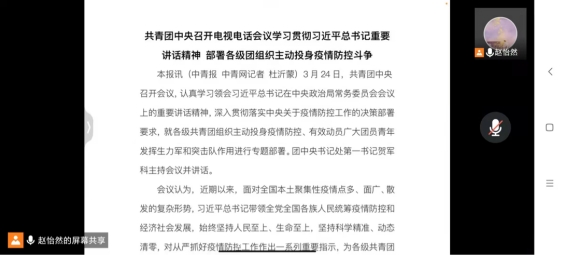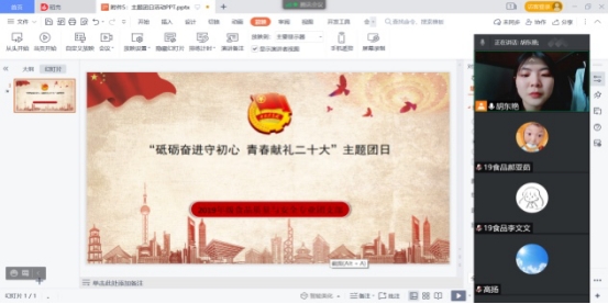 为深入学习贯彻习近平总书记关于青年工作的重要思想,教育引导广大团员坚定不移听党话、跟党走,庆祝建团100周年,以奋发向上的精神迎接党的二十大胜利召开,太阳成集团tyc9728各团支部于2022年4月1日—3日在腾讯会议开展“砥砺奋进守初心,青春献礼二十大”线上主题团日。