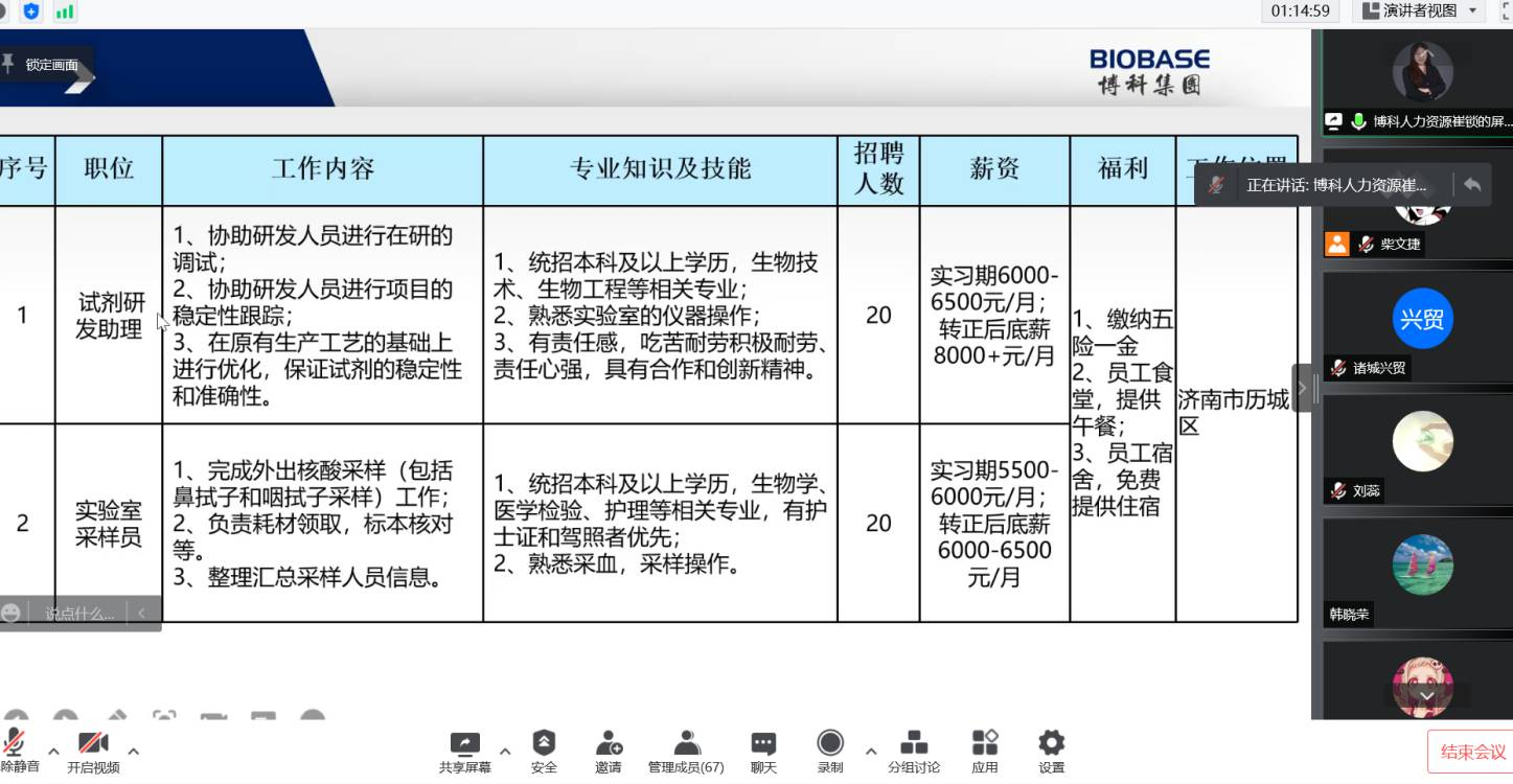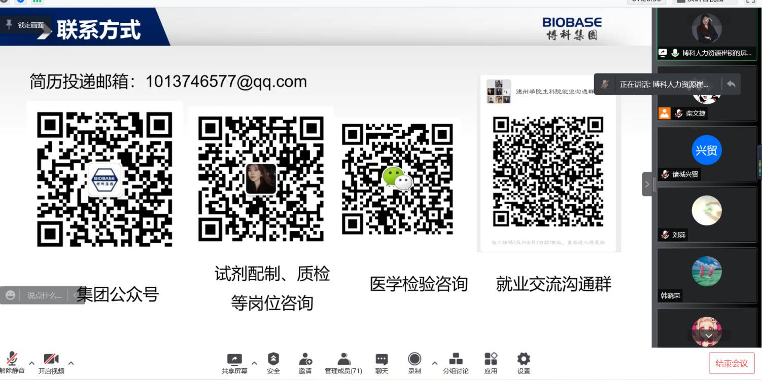 为贯彻落实全国普通高校毕业生的就业创业工作,做好新冠疫情防控下的高校毕业生校园招聘工作,给毕业生提供良好的就业服务,太阳成集团tyc9728学子于2022年4月29日在线上参加山东博科诊断科技公司宣讲会活动。