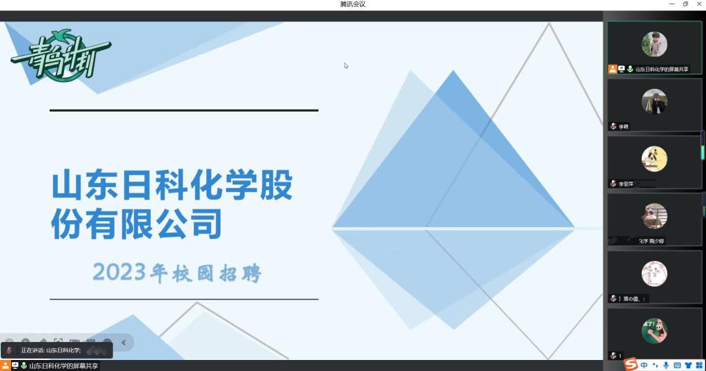 为更好拓宽毕业生就业渠道,生科院于4月14日下午14:30举办了山东日科化学有限公司线上宣讲。共有约20人参加此次线上宣讲。
