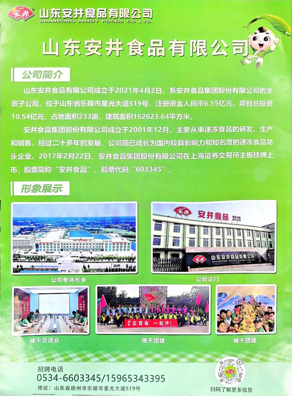 山东安井食品有限公司成立于2021年4月2日,系安井食品集团股份有限公司的全资子公司,位于山东省乐陵市星光大道519号,注册资金人民币6.55亿元。项目总投资10.54亿元,占地面积233亩,建筑面积162623.64平方米。
